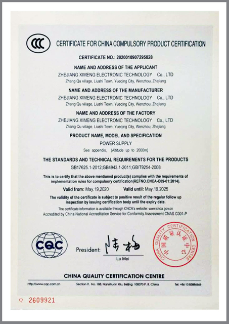 Zhejiang Ximeng Electronic Technology Co. ، Ltd. هي شركة ذات تقنية عالية متخصصة في التصميم والبحث والتطوير والإنتاج والبيع.تأسست شركتنا في عام 2008 في الصين ، يتمتع فريق Ximeng الاحترافي بخبرة غنية في التعامل مع منتجات أجهزة الاستشعار وإمدادات الطاقة من OEM / ODM.نحن موجودون في YueQing Wenzhou الصين ، النقل هنا مريح للغاية ، إنه على بعد 15 كم فقط من مطار Wenzhou ومحطة السكك الحديدية و 104 طريق سريع للولاية عبره.